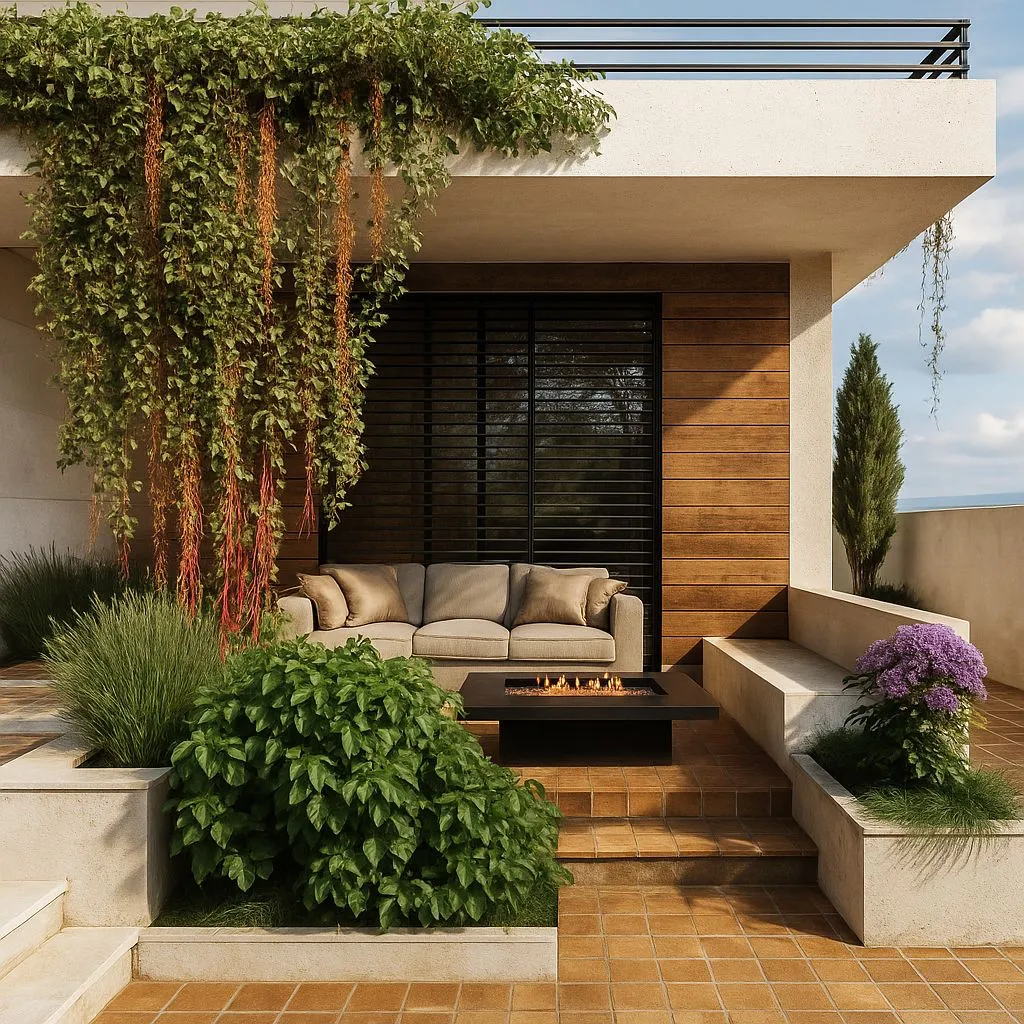 - Emotional Protection — The terrace, greenery, and canopy act as layers of privacy and psychological safety.